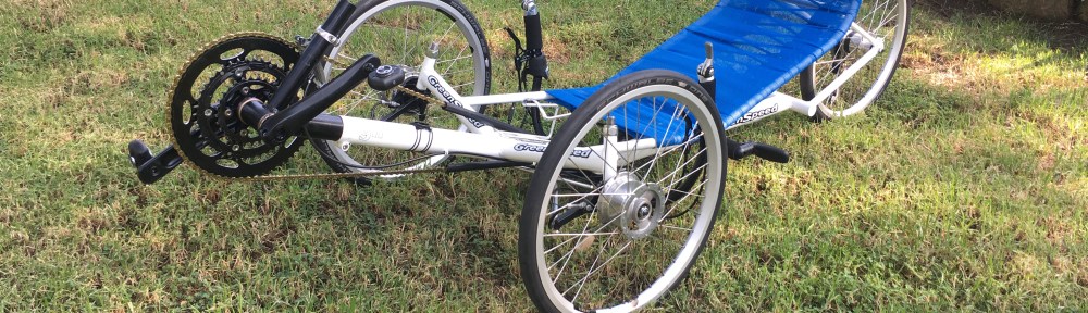 Since this trike was built in the early 2000’s, I had expected it to need a ground up restoration. I was pleasantly surprised at how clean it is. I put it together with all of the supplied, very old parts to evaluate what changes I wanted to do to it. These photos show the GLR in this state with the addition of a later crankset, chain an rear derailleur. I’ll spend some time with it and come up with a game plan. Expect to see some changes in the future.