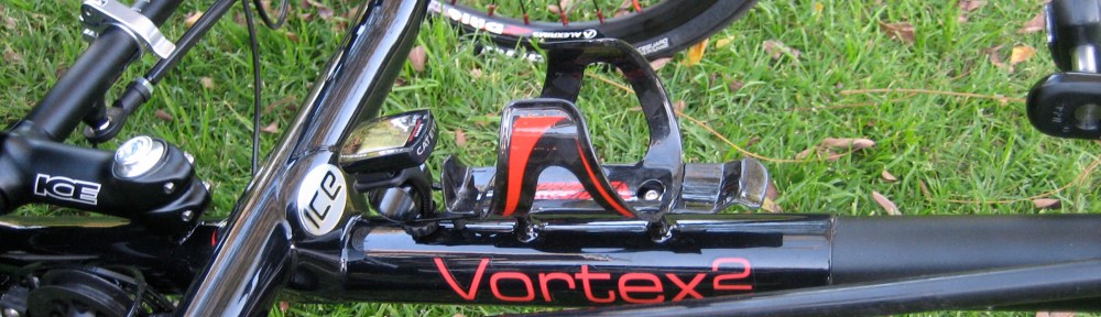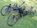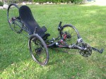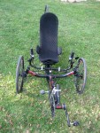 I picked up my Vortex 2 by Inspired Cycle Engineering (ICE) in March, 2010 from Bentup Cycles. It’s in the stock configuration in these pictures. I was hoping to go without the seat wings, but it turns out that they are required. I ended up selling this trike within a few months. I could not get the seat laid back enough for my tastes. Also, the trike just felt too wide and high off the ground. It felt slow.